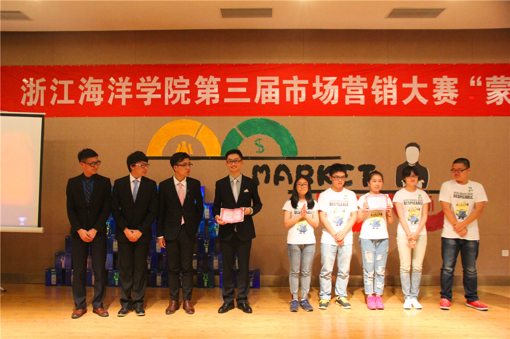 经过校外营销与限时营销激烈的考验,共有牛奶缪斯队、唯一队、海之萌队等8支队伍进入决赛。在主持人介绍完比赛环节后,市场营销大赛决赛正式开始。比赛第一环节,每支队伍按次序在舞台上用走秀的形式呈现出各自队伍的活力与张力,对自身队伍的个性风采进行了展现。在第二环节,每支队伍按照原先抽取的顺序分别上台通过ppt展示的方式向评委和在场的观众介绍自己队伍比赛的历程和传达各自的营销理念,来自“唯一”队的“只要你敢想,万事皆可能”的营销理念,诠释了营销不仅仅是推广和销售商品,也是一次智慧的云集和梦想的实现。每支队伍倾情讲解,各具特色,给评委和现场观众留下了深刻印象。经过评委们艰难而激烈地讨论,牛奶缪斯队获一等奖;唯一队和海之萌队获二等奖;天生一队,Running和卖牛奶的小火柴三支队伍获得三等奖。