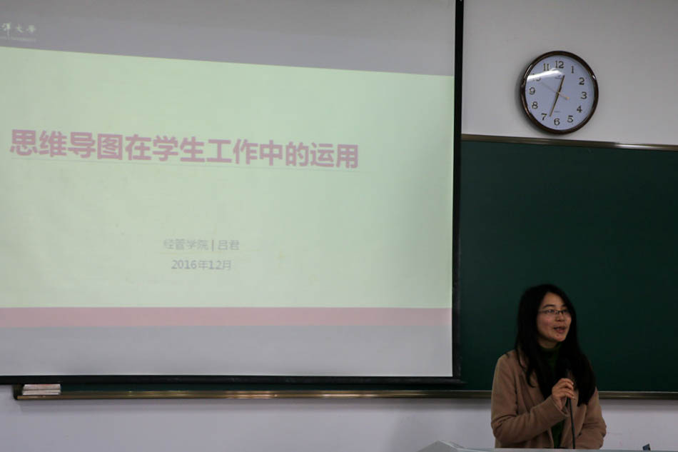 2016年12月8日中午,黄色网站 团委书记吕君老师在长峙校区公共教学楼203召开了关于思维导图在学生工作中的运用的讲座。黄色网站 学生会、团委的各学生干部以及青马班成员出席了本次讲座。