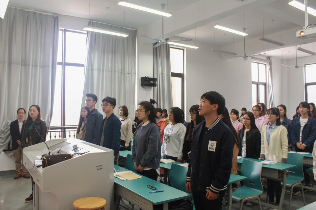 党训班在激昂的国歌中拉开帷幕。徐幼文老师首先将学院开设党训班的目的、意义告知学员。她指出学院是为了让学员们更深层次的学习到马克思列宁主义、毛泽东思想、邓小平理论等社会主义指导思想,进一步加强对党的性质、宗旨的了解,培训出更合格的共产党员而特意开设的党训班。其次,徐幼文老师说明了党训班的课堂要求、课程安排以及课程考核。她重点强调了上课的纪律性以及作为入党积极分子的集体意识、奉献精神和为他人服务的态度,她鼓励学员们积极参与平时的志愿服务活动,要起到榜样和示范作用,希望大家严格要求自己。仪式第四项,由学员代表莫潇凡发言,她代表全体学员表明了要认真学习党的基本知识、严格规范自己的决心,并祝本次党训班圆满成功。紧接着,易书记讲话,阐述了本次党训班的重要性和必要性,并对学员们作出如下要求:1.学员们要端正入党动机;2.希望学员们认真系统地完成此次培训;3.一定要遵守课堂纪律。最后,易书记祝福大家学有所得。