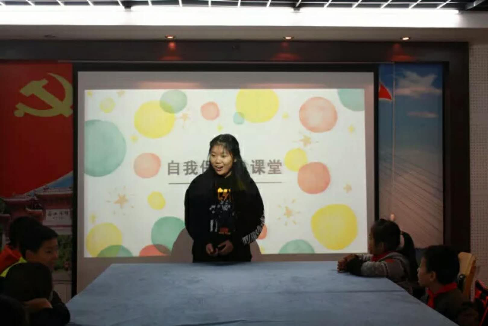 第一堂课,志愿者们辅导了小朋友们作业,帮助他们听写语文单词,检查数学算数,纠正不良坐姿。第二课堂中,杨佳燕志愿者化身小老师,为小朋友讲解了儿童自我保护方法,教会小朋友们认识身体的隐私部位,并详细说明了四种“警报”:触摸警报、视觉警报、独处警报、约束警报。通过制作“爱心圈”和“照顾者名单”的形式,让小朋友们知道了在什么情况下隐私部位可以被触碰,遇到坏人侵犯自己身体时要大声呼救,不能和陌生人单独走到偏僻的地方。小朋友们通过最后的安全测试,学唱自我保护的儿歌。小朋友们表示在本次课堂中学习到了许多自我保护方法,懂得了和坏人“say no”。