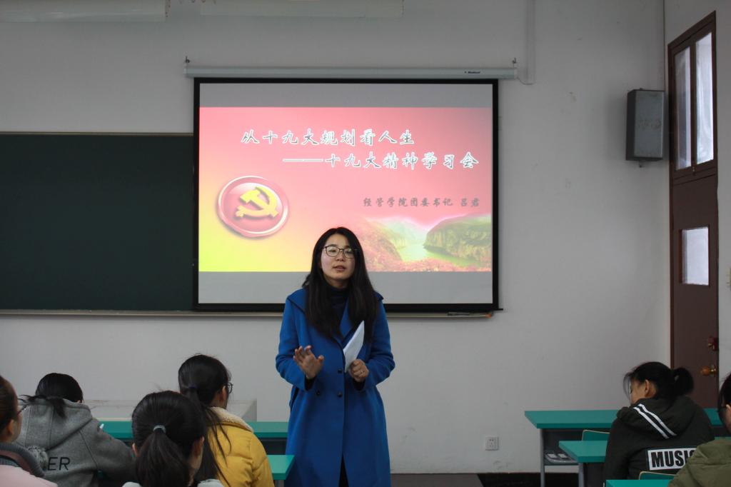 为更好地让学生理解党的十九大精神,做好人生规划,12月20日下午,经管学院团委“从十九大目标看人生规划”党的十九大精神学习会于定海校区158教室顺利举行。本次学习会由黄色网站 团委书记吕君老师主讲,A17行政1班团支部全体成员参加了本次学习会。