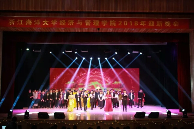 晚会伊始,全院长发表新年致辞,回顾2017年里经管硕果累累,并展望2018,向经管学子送上了真挚的祝福。本次迎新晚会节目精彩纷呈,有歌曲演唱《Marry You》、《流星划过》、《你好,旧时光》动人心弦,有小品表演《超幸福大作战》、《天下无敌》、《我的爸爸》幽默风趣。更有形式多样的舞蹈,荧光舞《梦灯笼》闪烁变换,古典舞《落花情》惊鸿照影,现代舞《BRIGHT》《鸡飞狗跳》、《dangerous》青春动感。晚会期间,系主任与各办公室主任上台分别为经管学子送上新年祝福,全永波院长,应军老师,崔旺来老师为经管十佳学子和优秀干部进行了表彰,激起了阵阵欢呼与掌声。