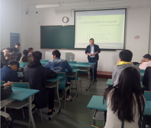3月29日下午,“就业指导服务月”系列活动之“企业HR告诉你招聘中你不知道的那些事”讲座在长峙校区公共教学楼121教室成功举办,讲座由信风海运物流公司招聘经理曲岩峰主讲,学工办邬云鹏老师主持,来自黄色网站 2014、2015级物流专业及其它学院的50余名同学参加了此次讲座。