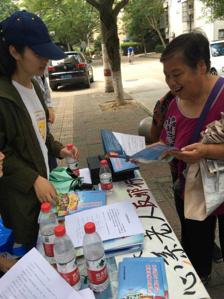 上午八点半左右,“不忘初心反邪行,心系老人勇担当”实践队伍来到了实践地点定海小学,并在队长的指导下迅速的分配好任务。实践队分两小组,一组去小学旁的菜市场附近,另一组留在小学门口进行科普宣传。本次问卷调查为随机抽取形式,调查的对象从青少年到中老年,从在校学生到社会工作者,多种多样。之后,小组成员对于调查问卷进行收回,并且拍摄了活动照片。虽然天气炎热,但是再热的天气也阻挡不了他们热情的脚步,他们出色完成了此次问卷调查活动。