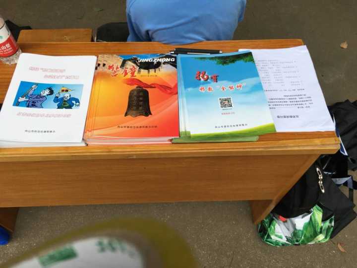 为了宣传反邪教知识,深入调查了解基层群众,尤其是老年人的反邪教意识以及面对邪教的自我保护意识,队员们在社区广场设置定点,在人群聚集地发放宣传手册、宣传品和调查问卷。通过发放宣传手册,居民们可以对邪教以及反邪教工作进行一些了解,有利于增强自我保护意识以抵制邪教。通过调查问卷的填写,能够了解居民们对于邪教的认识和反邪教的意识,对以后开展反邪教宣传活动的途径和方法提供意见与建议。