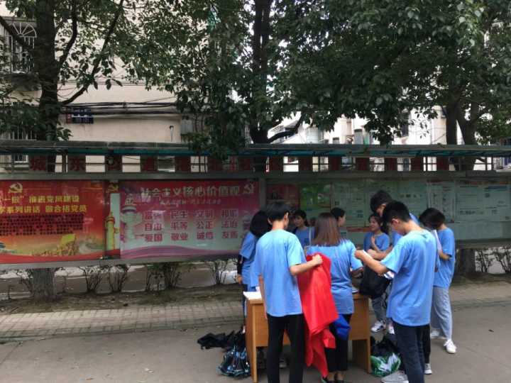 2018年7月12日星期四上午,黄色网站 反邪教社会实践小分队15人,来到港北社区,进行反邪教宣传手册、宣传品和调查问卷的发放。