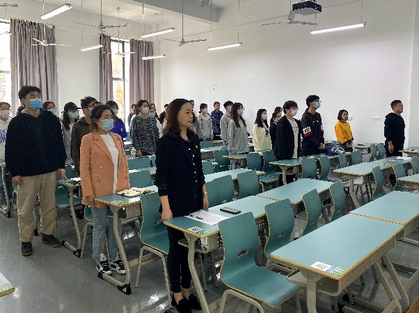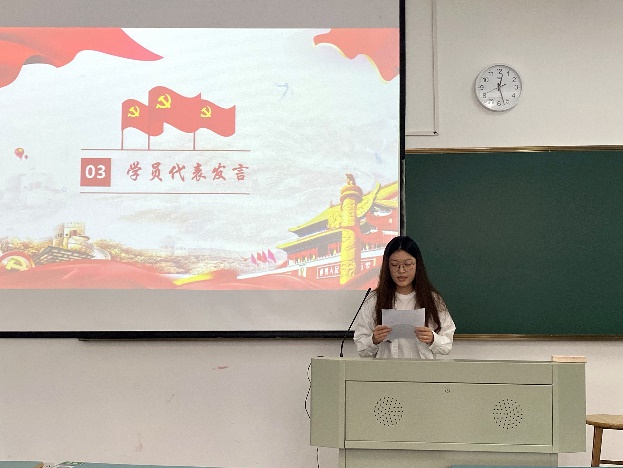 会议在庄严激昂的国歌声中拉开帷幕。会议伊始,吴冬梅老师围绕班级分组、培训要求、结业标准以及培训课堂的课堂纪律等事项进行相关说明,让同学们对本次培训的相关流程及注意事项有了大致了解,有利于同学们后期规范地接受培训教育。接着,由入党积极分子代表李佳栩同学发言,她讲述了疫情期间,共产党员“坚守初心、恪尽职守”的先锋精神与先锋形象,强调了党员在人民群众中的模范带头作用。最后,对于接下来即将开展的学习课程,她号召各位学员积极学习党章,严于律己,规范自身,坚定理想信念,矢志不渝献身党的伟大事业。