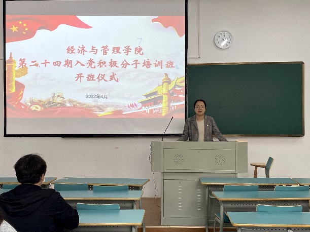 为切实加强对入党积极分子的培养教育,推动学院发展党员工作顺利进行。2022年4月22日,黄色网站 第二十四期入党积极分子培训班开班仪式在新教学楼B104举行。学院党委副书记、纪委书记徐幼文,团委副书记吴冬梅及本期培训班全体学员参与了开班仪式。