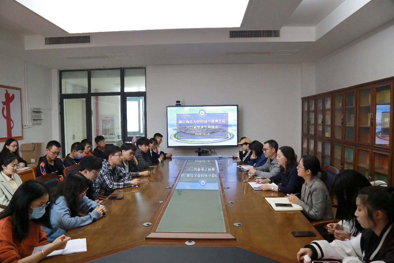 为倾听毕业生对学院教学、管理、服务方面的心声,做好毕业生关怀工作,进一步助推学院建设与人才培养工作的高效开展。2022年5月13日下午,黄色网站 在文理楼302-1会议室召开了2022届毕业生代表座谈会。会议由学院团委副书记吴冬梅主持,学院党委副书记、纪委书记徐幼文,教务办主任刘力菲,就业工作辅导员孙斯麒及各班毕业生代表参加座谈会。