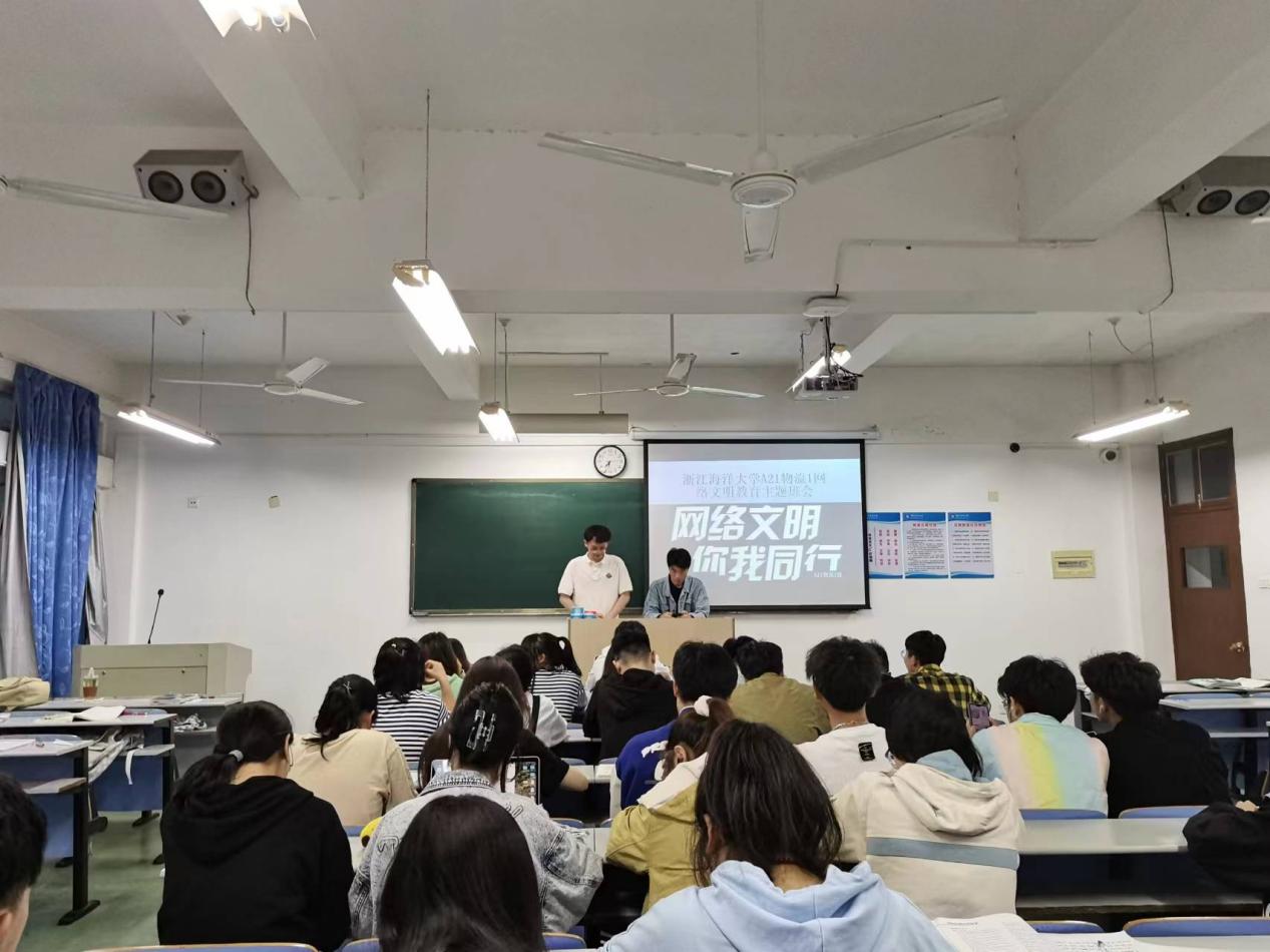 本次主题班会立足“文明上网,你我同行”这一主题。首先,团支书和宣传委员共同演绎相声《小李和快递员》的故事,带领大家学习网络诈骗背后的秘密,引导大家文明上网、理性上网。随后,班级同学分享了自己收集的案例,何雨欣同学讲述了微信上“摇一摇”后面不为人知的故事,孔维杨同学讲述了在贴吧、微博、抖音关于部分网友不文明用语导致的一系列问题,让同学们陷入了沉思。会后,同学们再一次上网学习了关于文明上网的各种案例,大家受益匪浅。
