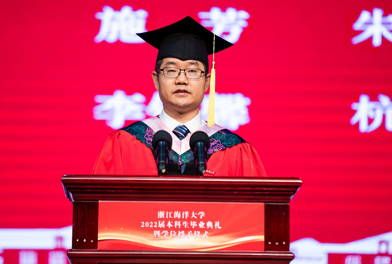 2022届全体毕业生们,作为你们逐梦人生的同路人和引路人,我为你们在海大取得的丰硕成绩感到骄傲和欣喜,希望未来你们能时刻牢记党的教诲,立志民族复兴,不负韶华,不负时代,不负人民,带着初心和梦想从这里出发,一路脚踏实地,一路仰望星空,向着光成为光,在青春的赛道上奋力跑出属于自己的最好成绩。