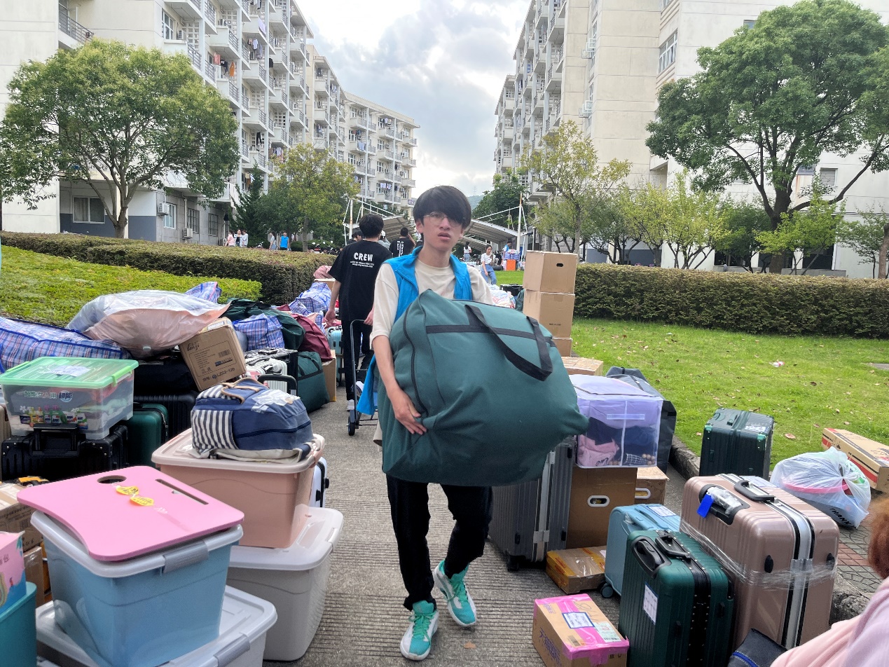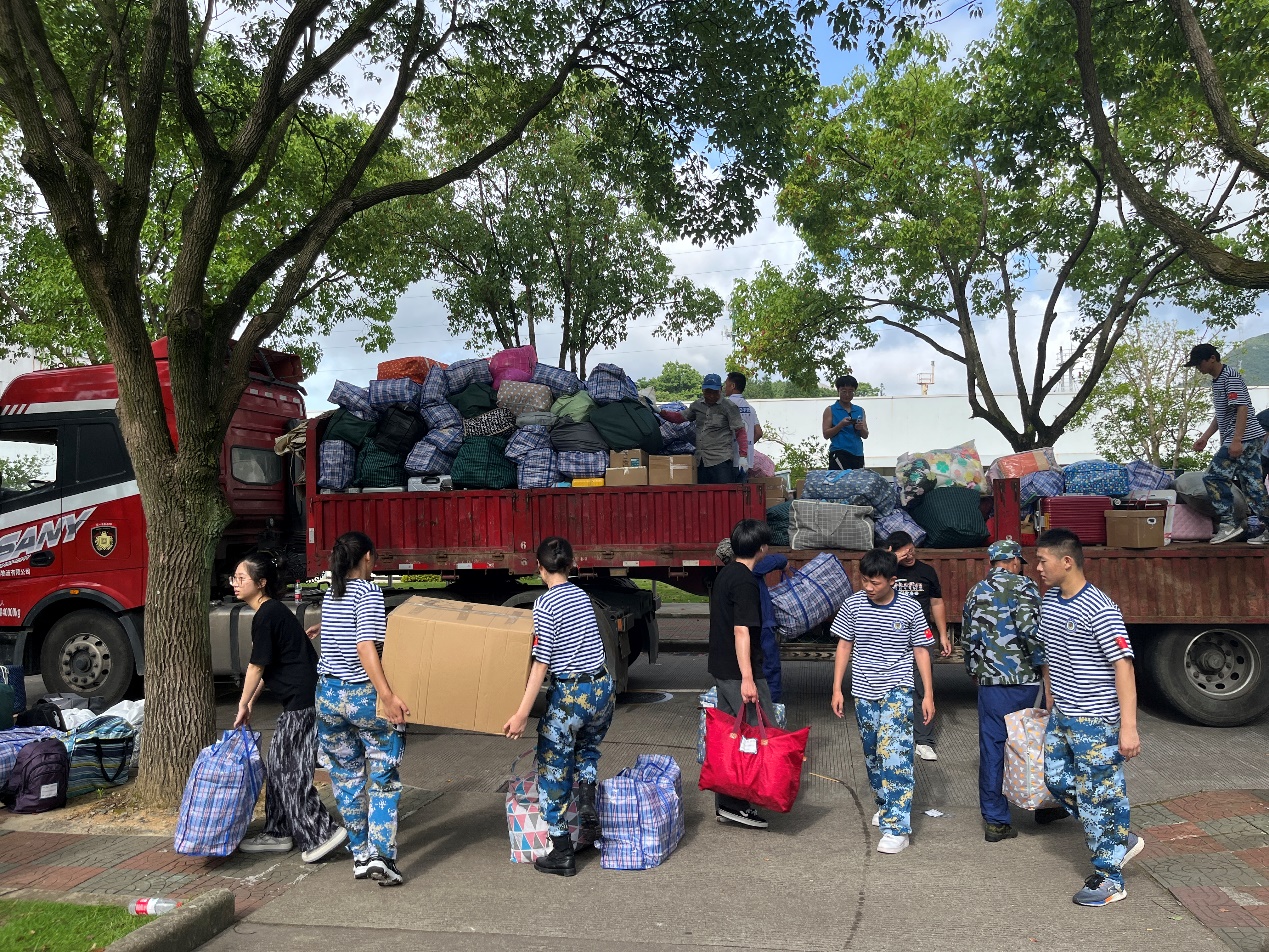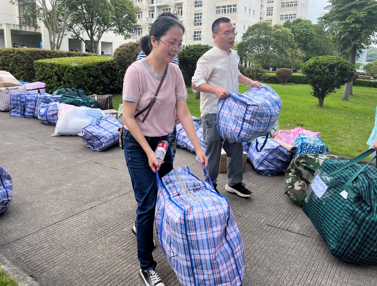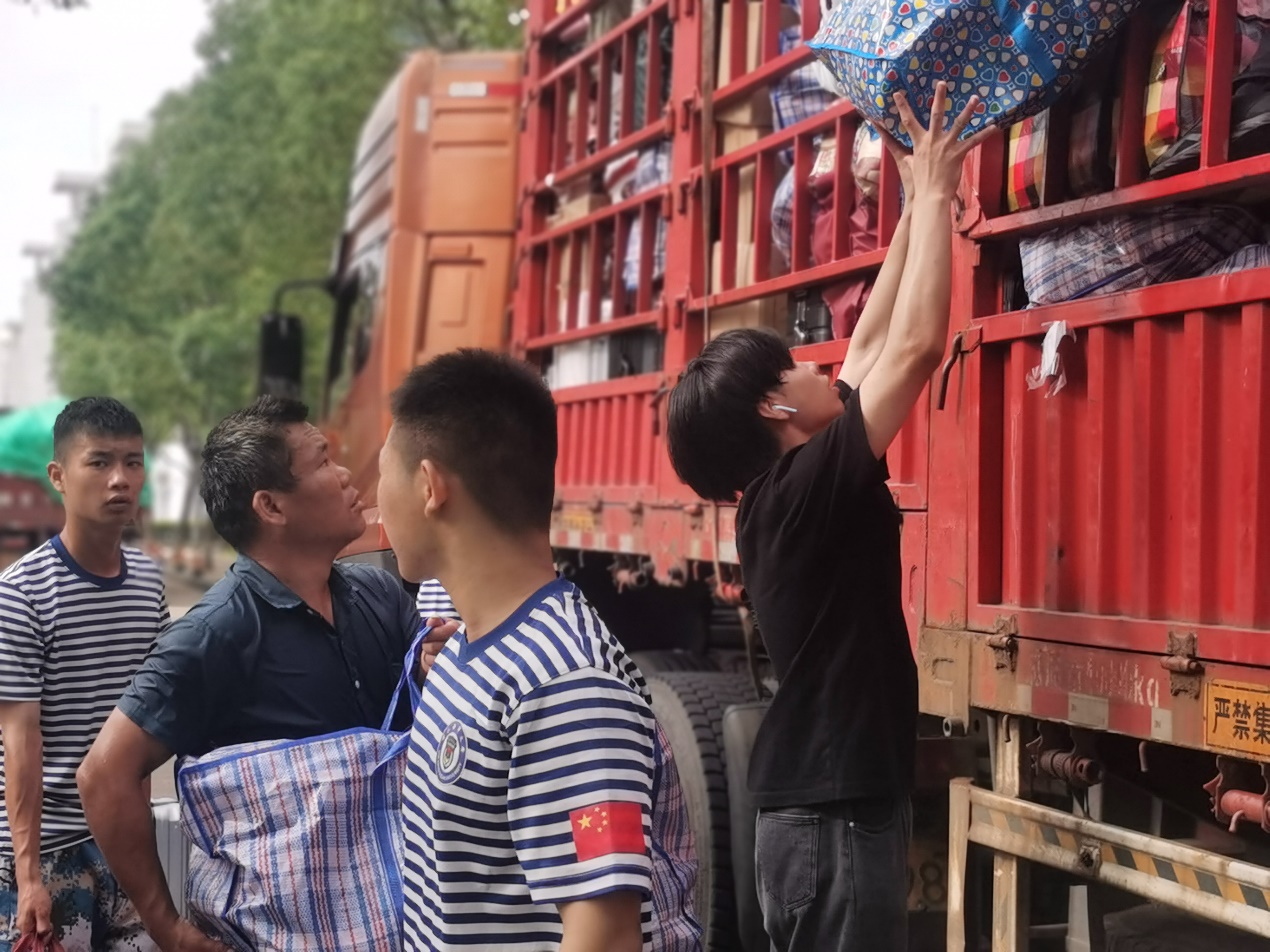 2021级的同学们在学院统一安排和部署下,依次有序地将行李摆放在定海校区指定点位,等待搬运货车到位后集中装车。为确保学生行李的运输安全,每一辆搬运车辆都安排了一位跟车同学。上午8时,第一辆装满行李的搬运货车从定海校区发往新城校区。在两个校区间,学院领导和老师们始终奋战在一线,现场沟通协调、指挥调度,及时处理同学们在搬迁过程中遇到的各种困难;来自各学院的学生志愿者们积极帮助同学们搬运行李、维持秩序、记录车次,切实为搬迁工作排忧解难。炎炎烈日下,尽管汗水早已打湿了衣裳,但是志愿者们坚守岗位、不辞辛劳、废寝忘食,用汗水诠释了“奉献、友爱、互助、进步”的志愿服务精神。上午11时,最后一辆搬运车辆从定海校区出发;下午13点,最后一件行李被搬运至G幢学生宿舍,历时6个小时的寝室搬迁工作在安全、平稳、有序中圆满结束。搬迁工作结束后,徐幼文副书记还带领学院学工队伍走访了学生寝室,老师们鼓励同学要尽早适应新校区新寝室的环境,养成良好的学习生活习惯,自觉遵守宿舍管理规定,以饱满的姿态、崭新的面貌迎接军训的考验。