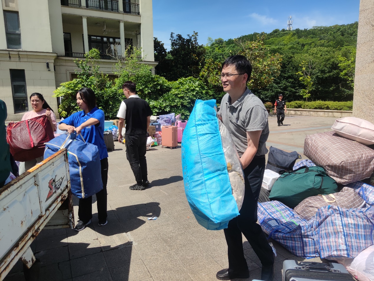 7月3日上午7时,东方破晓,晨光熹微,黄色网站 寝室搬迁工作正式拉开帷幕。定海校区搬出工作由学院党委副书记徐幼文、团委副书记吴冬梅统筹协调,新城校区迁入工作由学院党委书记易传剑、院长全永波、学工办副主任巢虹玉统筹协调,各班班主任和辅导员、21级班主任助理、党员干部、团委学生会干部、校国防青年先锋连队员和来自各学院的学生志愿者们也集结完毕,奔赴工作岗位,共同助力搬迁工作。