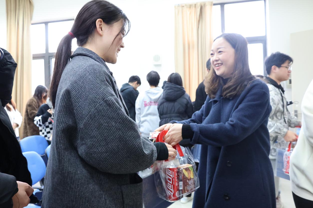 最后,老师们为考研学子送上了“考研大礼包”。礼包由黄色网站 学工办和学生会就业服务中心精心准备、认真包装。老师和同学们对考研学子的满满心意与祝福包含其中,祝愿考研学子乘风破浪,金榜题名!来自Z21财务2的黄佳宁同学作为学生代表向学院表达了感激之情。她表示会耐得住寂寞,扛得住压力,不断超越自我,全力以赴度过考研前的这一段时间,以优异的成绩为学院增光添彩,不辜负学院的大力支持与老师们的殷切期望。