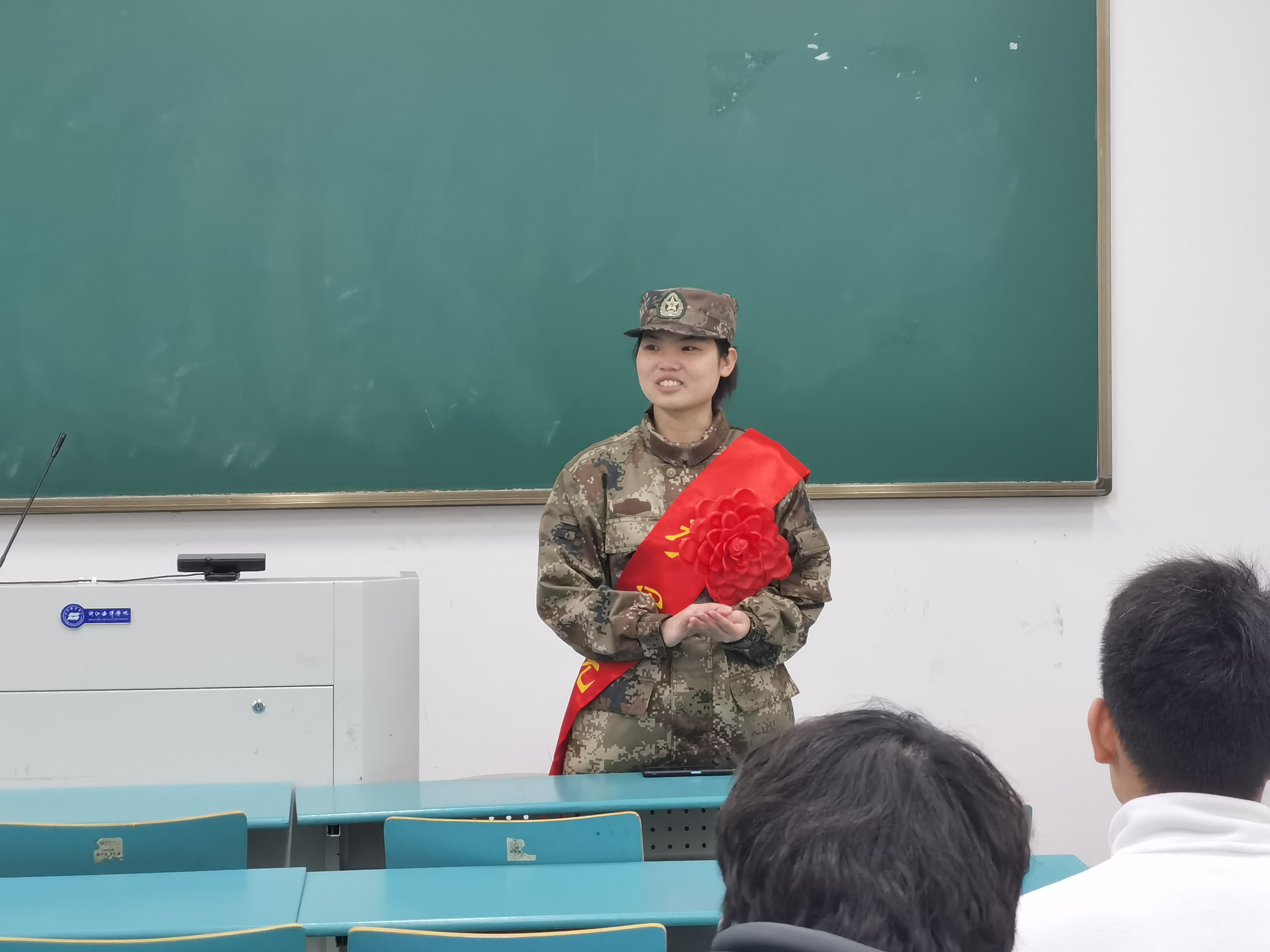 A20物流1退役士兵张鹏年同学,讲述了曾经的军旅生涯,同时希望马晓珠同学要坚决维护国家主权、安全、发展利益,以强国为己任,以前辈为榜样,刻苦训练,争当先进,努力把自己培养成为有灵魂、有本事、有血性、有品德的“四有”新时代革命军人,用青春和汗水展示海大学子顽强拼搏、开拓进取的精神风貌。