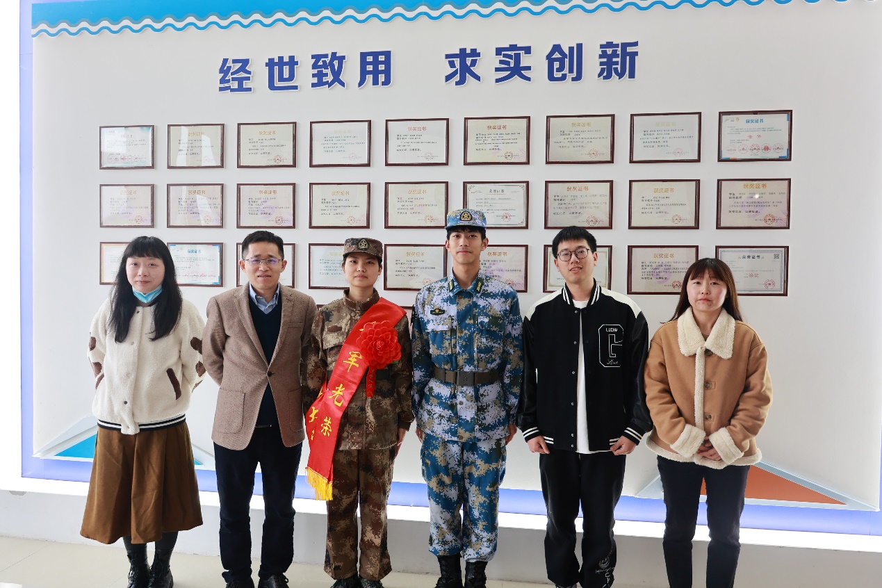 会后,副院长顾波军、学工办副主任巢虹玉、团委负责人施辰阳、物流管理专业辅导员朱晨晨和校国防青年先锋连连长姜浩天及队员代表们与马晓珠同学合影留念。大家勉励其到部队后,要积极主动履行军人职责,在军队大熔炉里不断修炼新的自我,展现中国军人忠诚、坚毅、勇敢的精神气质。同时铭记自身责任,勤学淬炼,提升政治素养,展现海大学子的才华与风范,为学校争光、为人生添彩。
