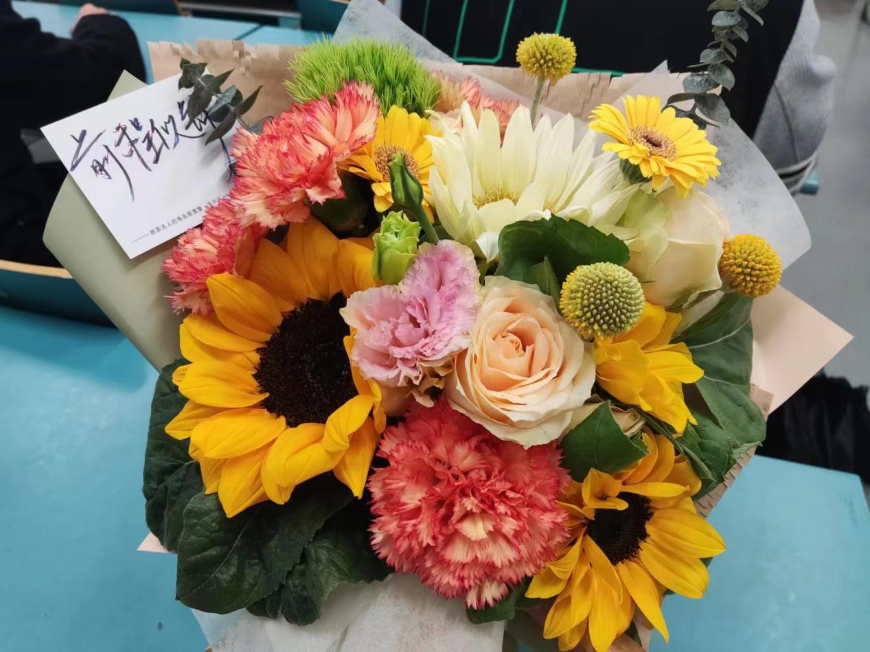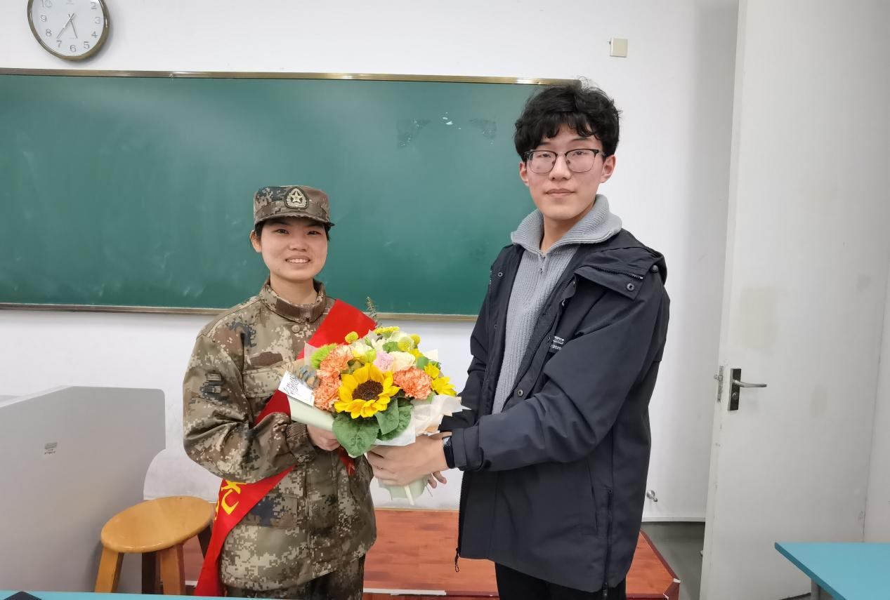 欢送会一开始,马晓珠同学首先上台分享了自己参军入伍的初衷与感想,她表示,部队是她一直以来憧憬的地方,她崇拜那些保家卫国的铮铮铁骨,那无所畏惧、勇往直前的血性。她想做的就是加入这支队伍,去守护更多、更灿烂的纯真笑容。发言完毕,班长阎涛代表全班为马晓珠同学送上鲜花,衷心表达祝愿。
