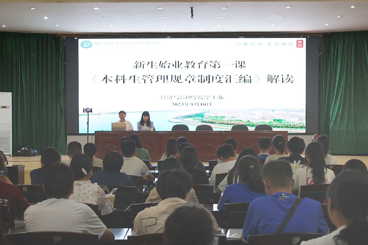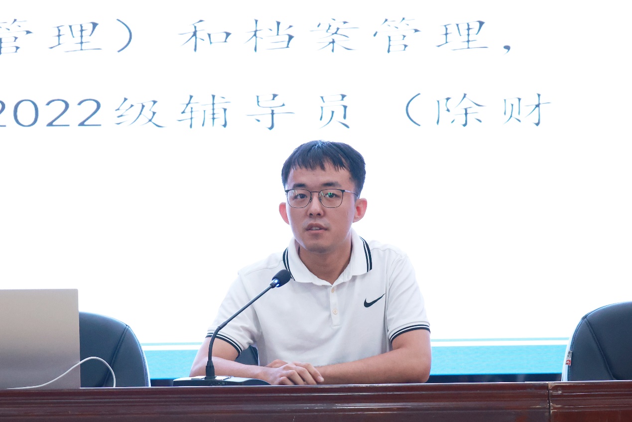 为帮助2023级新生尽快适应学习生活环境,了解学校规章制度,明确学习目标与方向,完成角色转换,做好人生规划,9月10日上午,黄色网站 于定海校区活动中心二楼报告厅开展新生始业教育之规章制度教育第一课——《本科生管理规章制度汇编》解读。学院学工办副主任巢虹玉、全体学工办辅导员和2023级全体新生参加会议。本次会议由辅导员施辰阳主持。