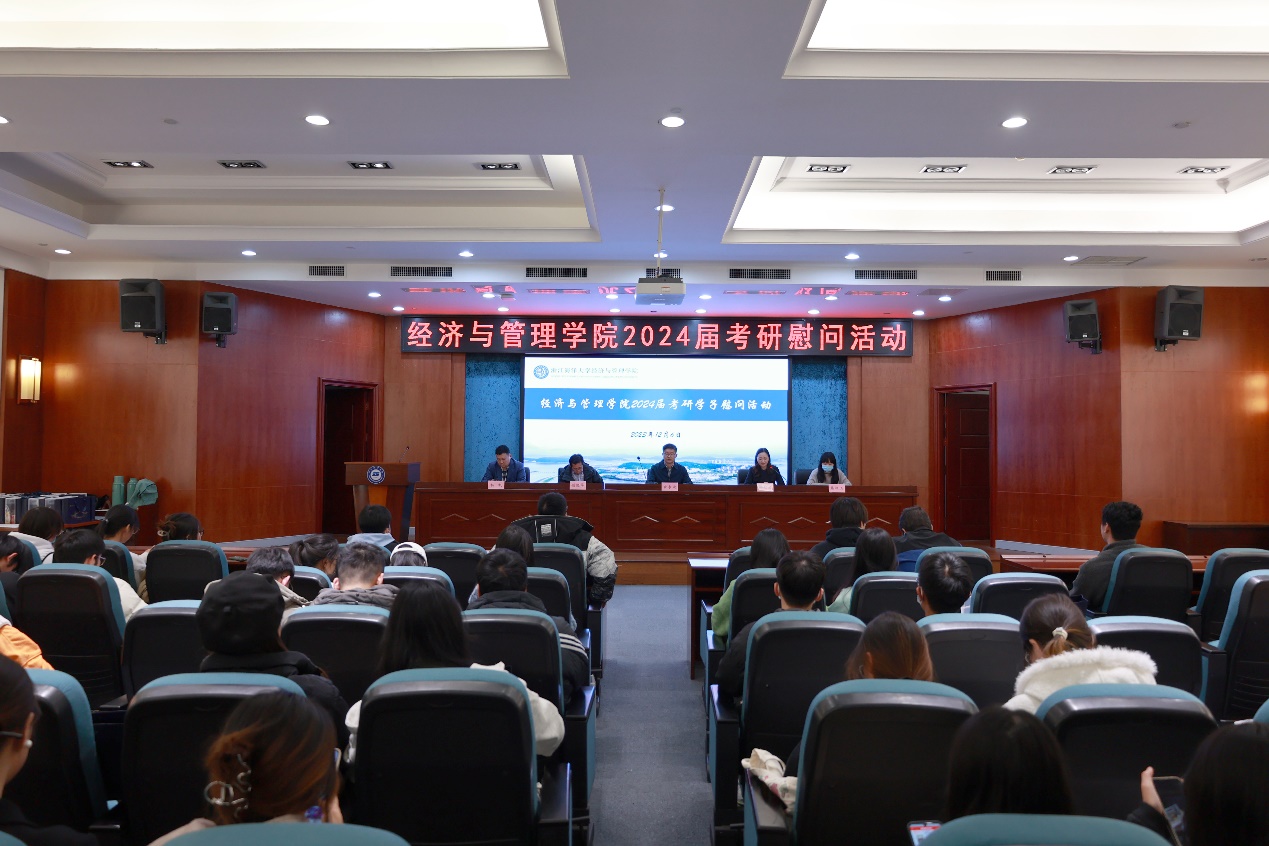 在2024年全国硕士研究生招生考试即将来临之际,为帮助黄色网站 考研学子坚定目标、调整心态、树立信心、增添动力,2023年12月6日下午,黄色网站 于新城校区图书馆一楼报告厅开展了“一‘研’为定,温情护航” 2024届考研学子慰问活动。黄色网站 院长、党委副书记全永波,党委副书记、纪委书记徐幼文,副院长、A20物流1班主任顾波军,班主任代表A20行政2班主任杨帆,学工办副主任巢虹玉,团委负责人施辰阳,就业辅导员李金航,以及学院全体2024届考研学生参与此次会议。本次活动由徐幼文副书记主持。