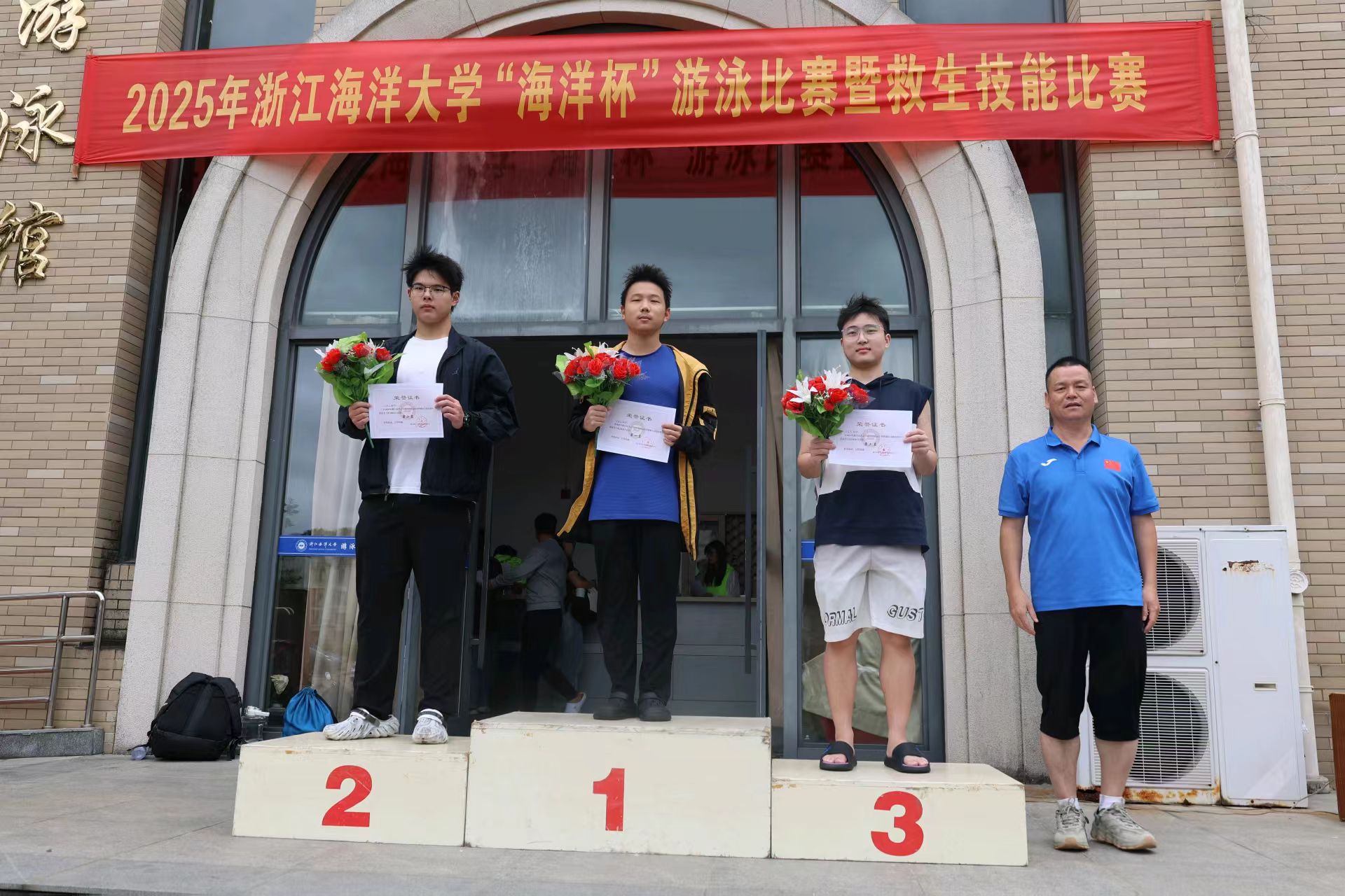 100米自由泳第三、200米自由泳第六、双人拖带第三