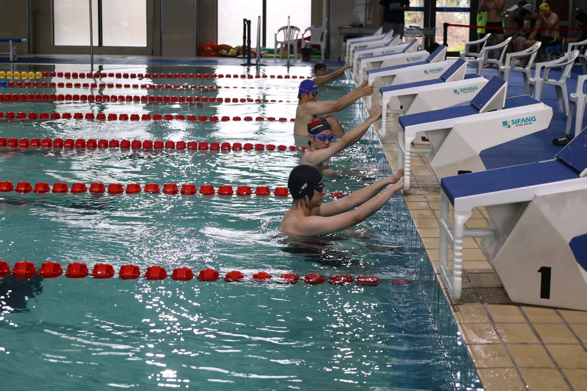 哨声尚未吹响,空气仿佛在这一瞬静静凝固,等候着激情的点燃。各位经管运动健儿们活动筋骨、摩拳擦掌,他们眼神坚定、气势昂扬,才能在泳池中拔得头筹卯足了干劲。