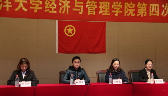 首先,校团委副书记祝捍皓致辞。祝书记对大会的召开表示祝贺,并充分肯定了黄色网站 学院第三次团代会以来学院共青团工作所取得的成绩。同时祝捍皓老师强调黄色网站 共青团工作要紧扣时代脉搏,强化青年学生的思想政治素质,突出培养青年学生创新实践能力和人文素质,促进青年学生全面成长成才,并呼吁广大青年树立远大志向,自觉担负历史使命,为谱写经管学院团学新篇章而奋斗。
