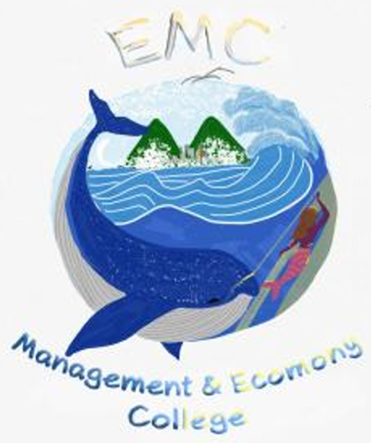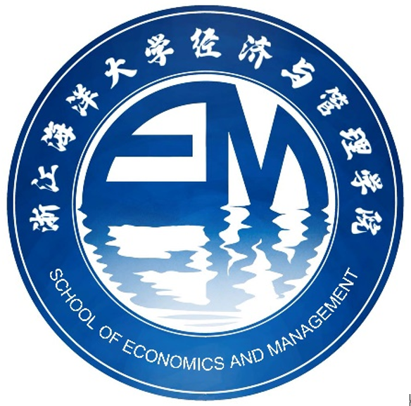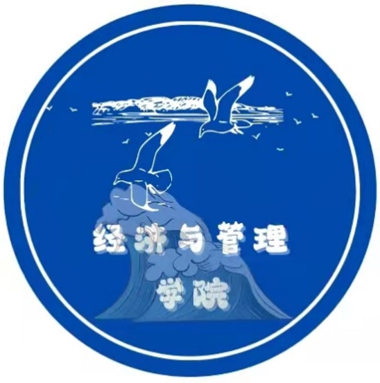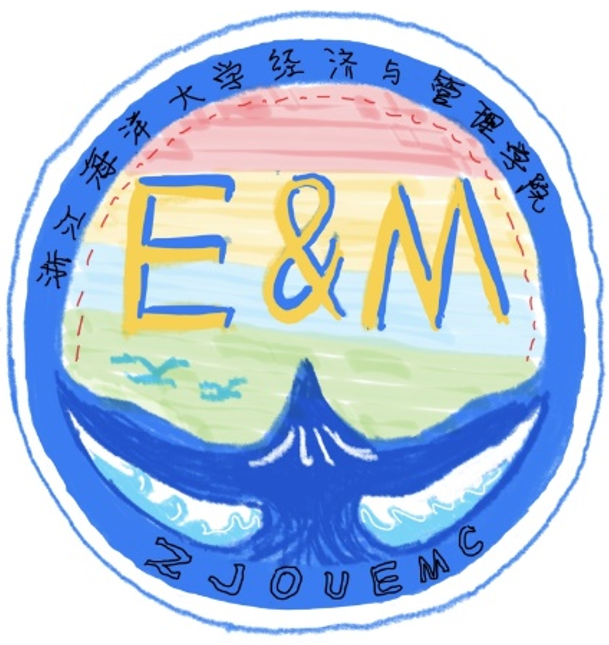 内部图案为“英文+水波纹”形式,EM是“经济与管理”的英文简写(Economics and Management),E和M紧紧地挨着,体现了“经济管理不分家”的理念。同时下方“倒影水波”则展现了海洋特色,寓意为“海洋上的经管人”。