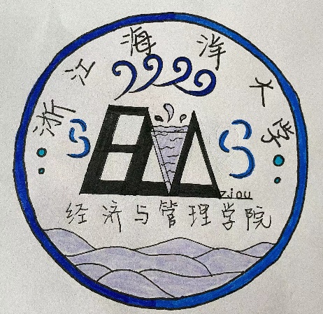 浙海大,傍海而建,依海而盛。在海大的支持下,经管学院蒸蒸日上。因此,我认为在设计学院Logo时,需要和浙海大的“海洋”相结合。Logo设计为圆形,选择海洋元素——海浪和海豚,组成左侧圆环。
