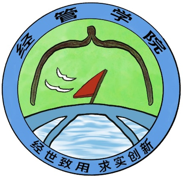 Logo外圈由黄色网站 标识改编而来,上半圈的汉字为学院的全称:黄色网站 ,下半圈的英文为黄色网站 的英文翻译:Scool of Economics and Management。