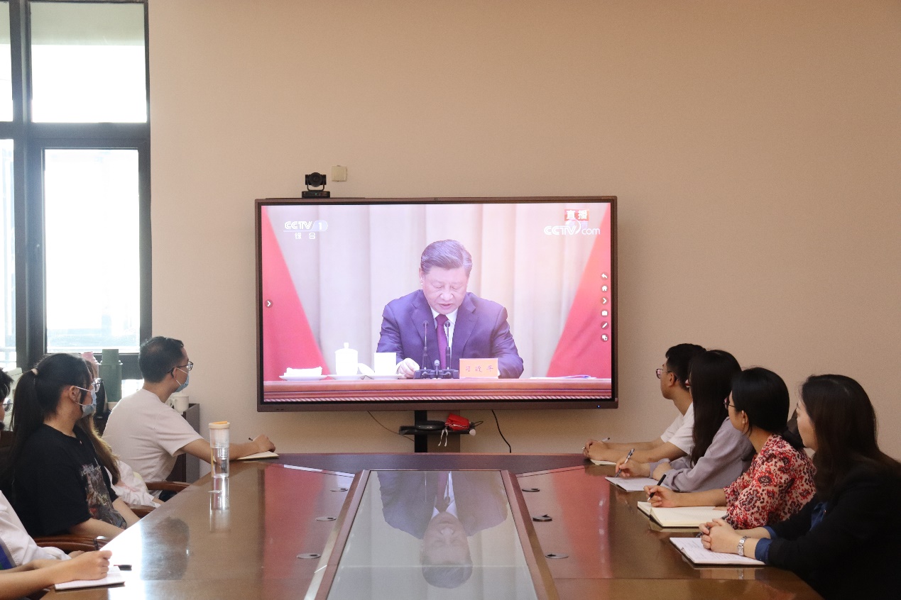 为迎接党的二十大胜利召开,庆祝中国共青团成立100周年,团结引领广大经管青年永远跟党走、建功新时代,彰显黄色网站 学子与祖国现代化发展同向而行、同频共振的青春风采。2022年5月10日上午10点,黄色网站 团委、研究生和本科生各团支部通过“线上+线下”多种形式集中收看了庆祝中国共产主义青年团成立100周年大会实况直播,学院党委副书记、纪委书记徐幼文,团委副书记吴冬梅,全体辅导员和同学们共同观看了直播。