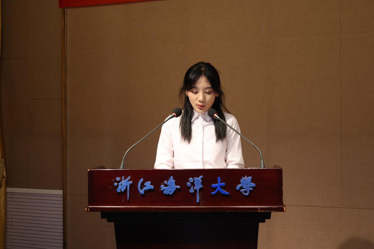 会议伊始,由团学干事代表尼玛卓嘎同学上台发言。尼玛卓嘎深情回顾了过去一年里团委学生会各部门所开展的一系列活动,细细诉说了各部门的工作成果与独特风采。她表示在团学这个大家庭里,每个部门都是不可或缺的一份子。她呼吁,未来团学的每一位成员要以梦为马,不负韶华,发扬“海纳百川、自强不息”的校训精神,用最广阔的胸怀迎接属于青春的挑战,向优秀的学长学姐们看齐,在绚丽的年华里开拓创新、勇毅前进,锻造出更优秀的自己。