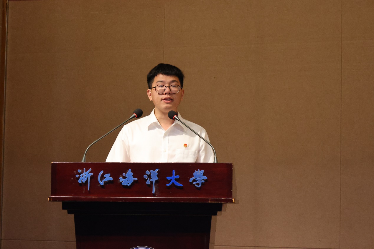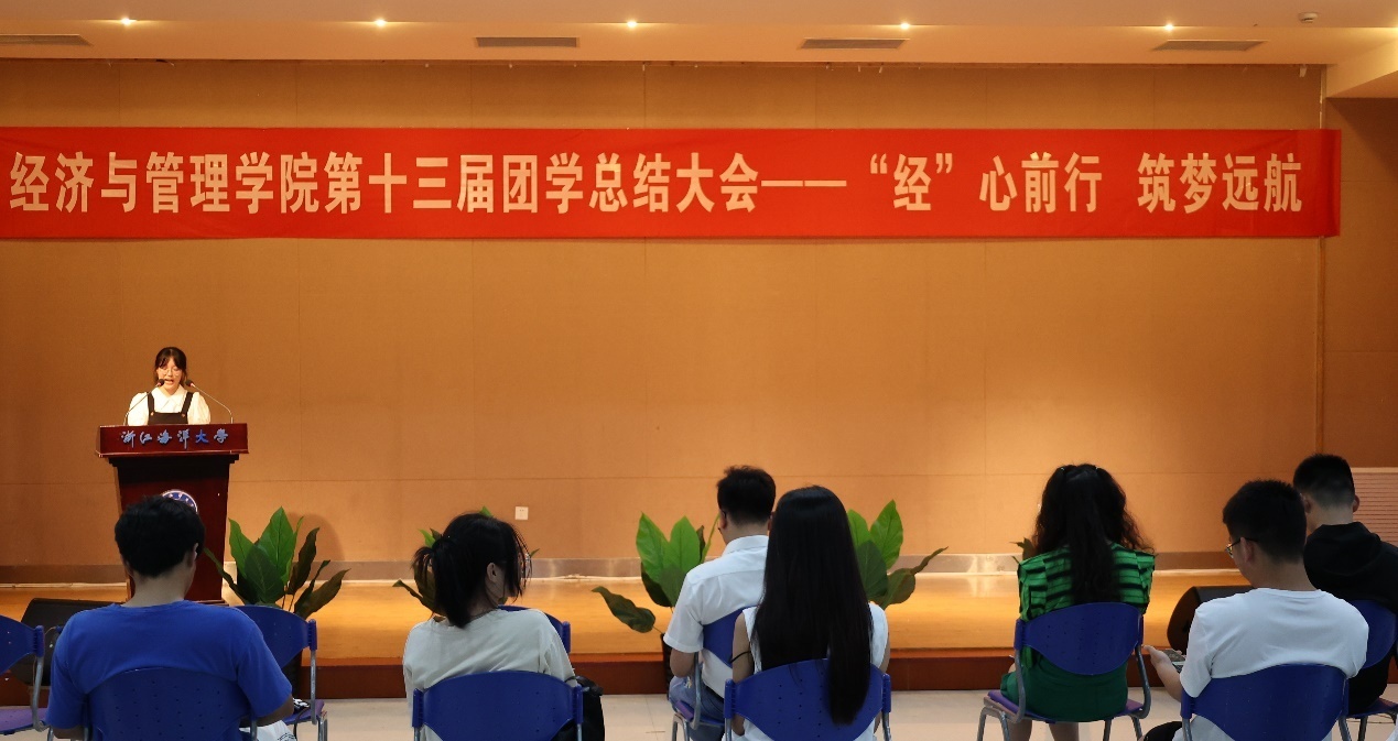 学院学生会执行主席朱梦斌同学代表第十三届团委学生会上台发言。朱梦斌从六个层面阐述了过去一年经管学院团学的工作核心,一是聚焦思想引领,提升学生工作精神内涵;二是铭记服务宗旨,齐心共筑和谐校园;三是优化部门职能,彰显团学工作活力;四是营造优质文化,提升学生会工作魅力;五是依托学科竞赛,提升学生会工作硬实力。最后她对全体团学干部、干事提出了三点要求,一要恪尽职守、积极创新;二要以经为心、活化社团;三要大力动员、积极参与,要以更严苛的标准,树立经管学院团委学生会的形象,不断创新形式、丰富载体,更好地服务全体同学。