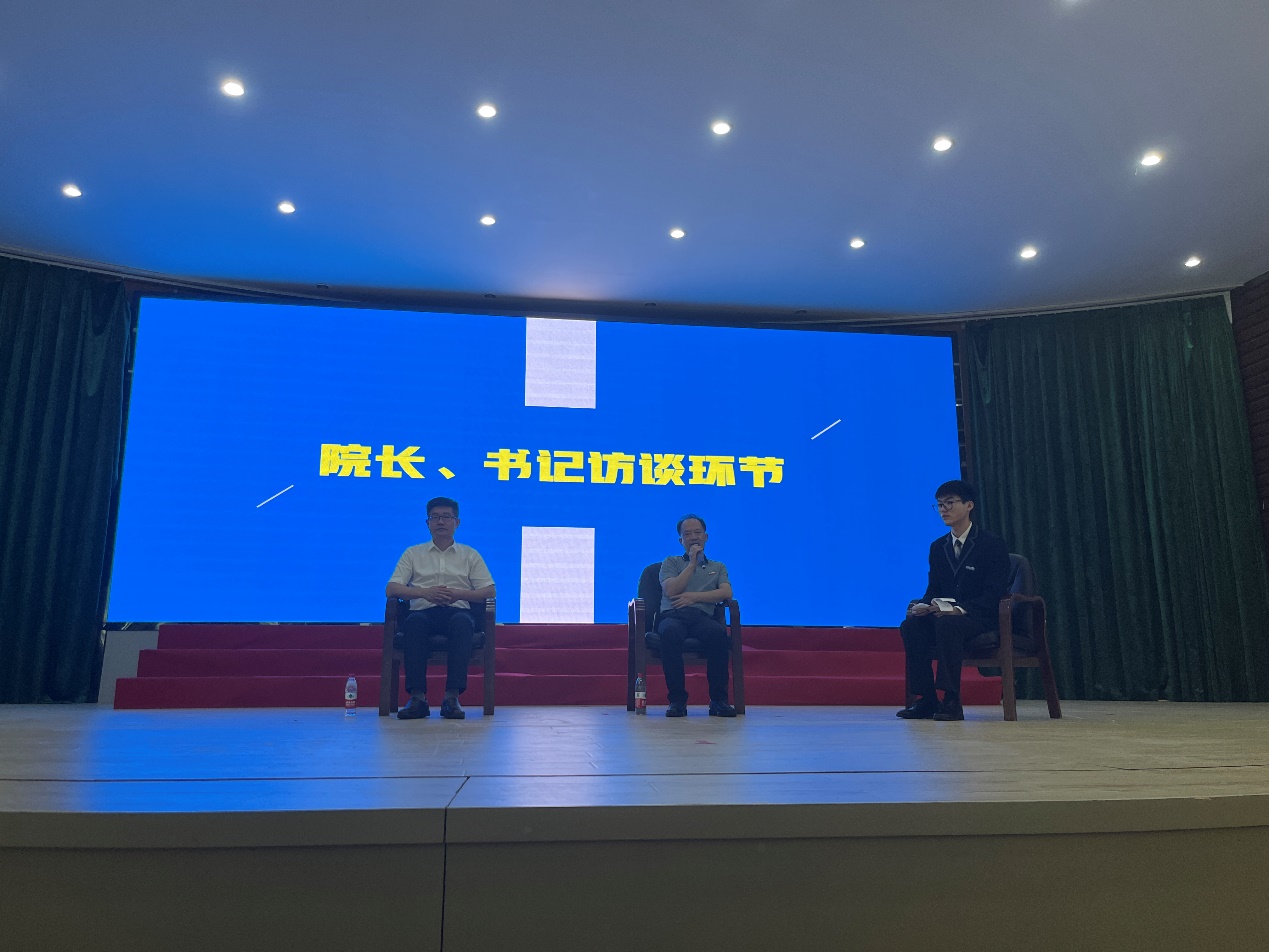 最后,是新生期待已久的院长、书记访谈环节,针对新生们关心的校园生活、学业成长、生涯规划、专业优势和就业前景等问题,主持人代表新生们向全院长和易书记一一请教。在两位老师的耐心解答后,同学们对大学生活和所学专业有了初步的认识与了解,对未来有了进一步规划,一定程度上拓宽了同学们思维的广度和深度。