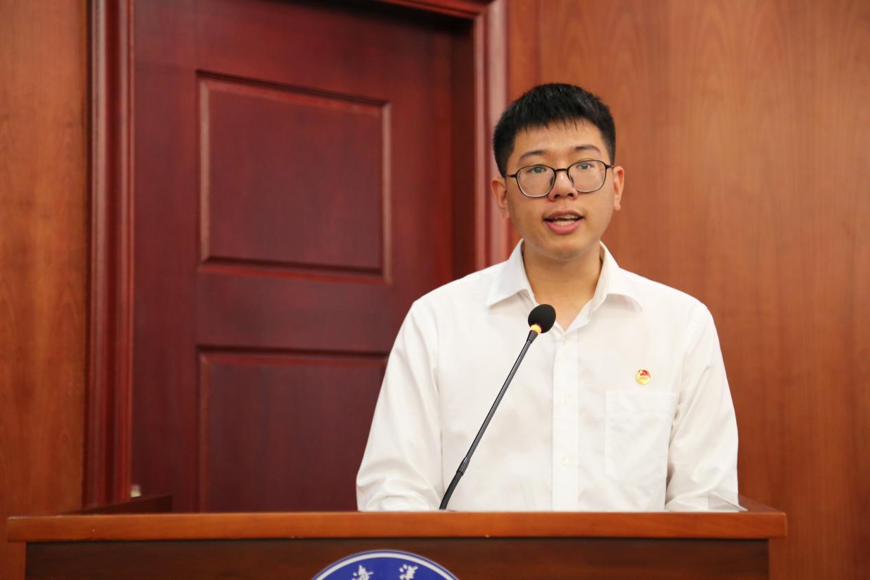 学院团委学生副书记、第十二期青马班学员赵雅欣同学深情表达了自己对于本次青马班的期待,分享了作为一名团学干部如何争做优秀的青年马克思主义者的见解。学院团委学生会人才发展部部长、第十三期青马班学员代表王凤君同学指出,面对纷繁的外在环境和漫长的人生经历,只有坚信马克思主义,才能掌握正确的人生价值观“总钥匙”。
