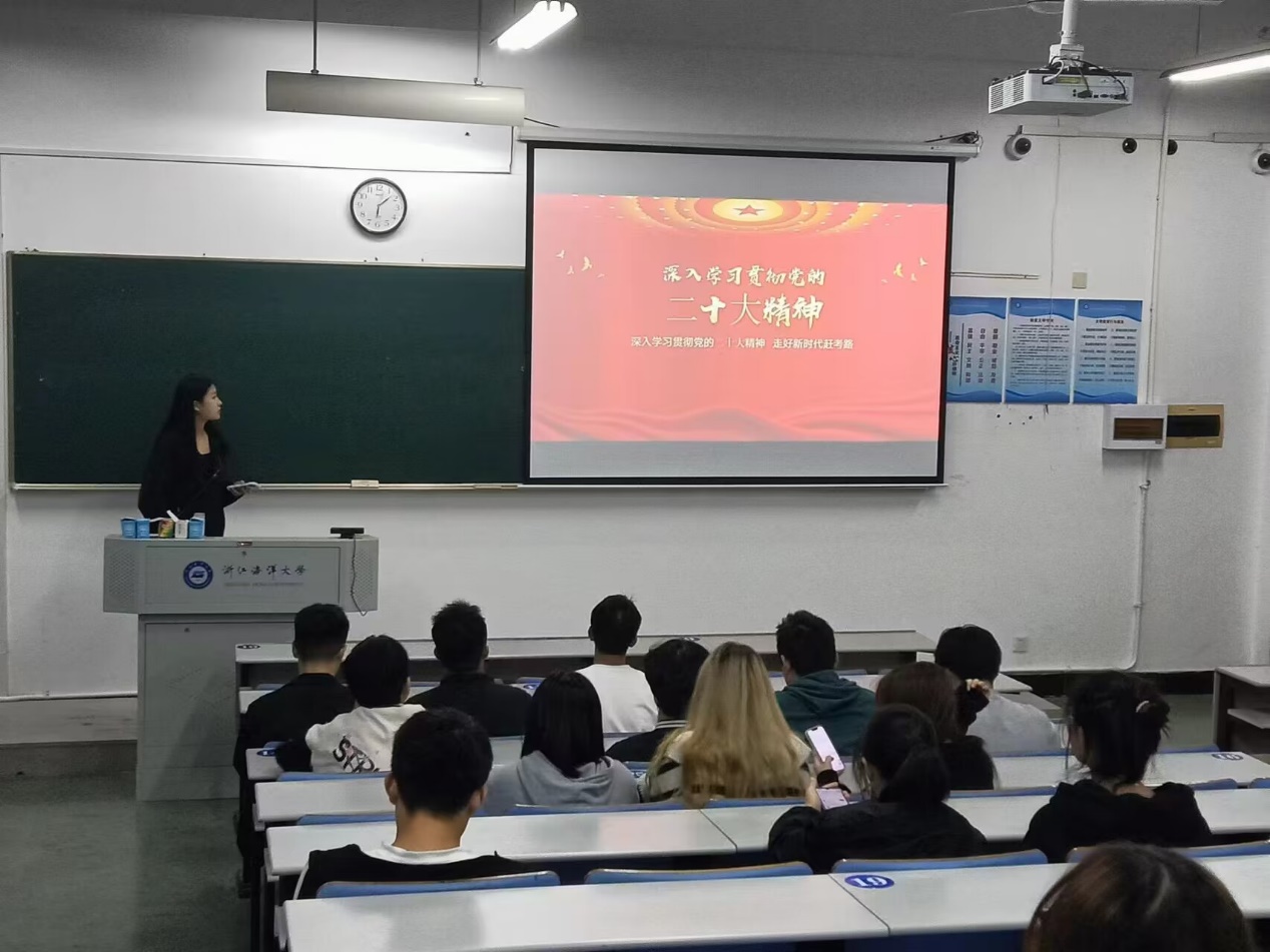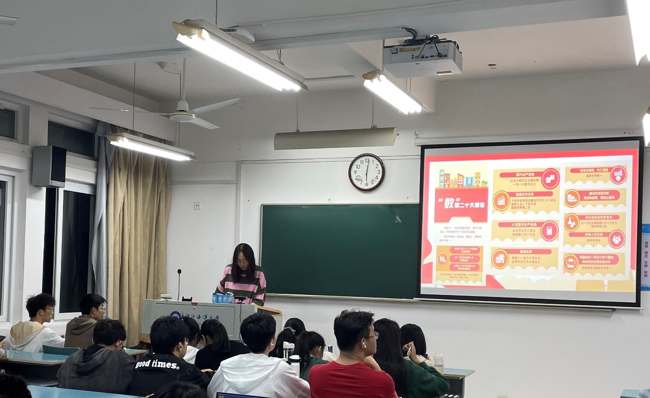 A22行政2团支部以“数读二十大报告”为主题,学习领会了党的二十大精神。团支书周嘉欣以简明扼要的数字化表达方式,概括归纳了二十大报告的核心要义和新时代十年的非凡成就,帮助班级同学及时、准确、全面地学习和掌握党的二十大精神,清楚地看到新时代背景下人民具体可感的美好生活,让每一名同学都对未来生活充满期待与向往。