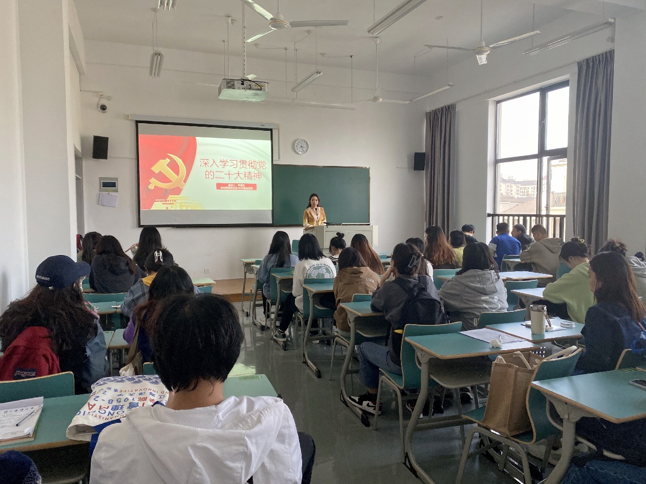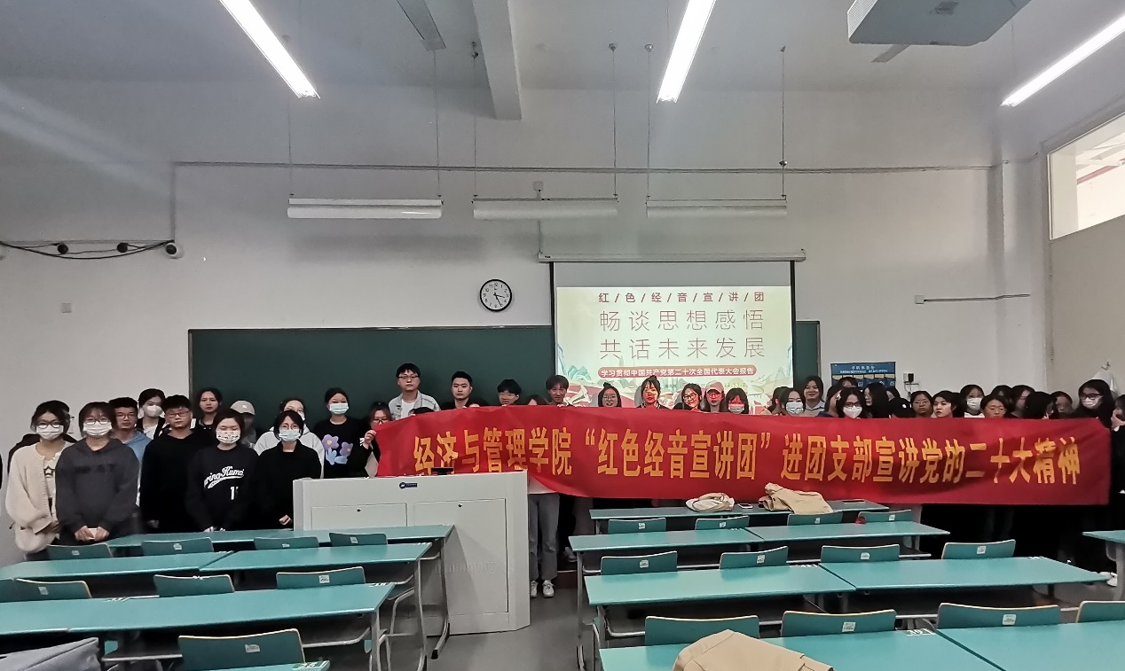 Z22财务2团支书、学院“红色经音宣讲团”成员寿海雁,以《畅谈思想感悟,共话未来发展》为题,同Z22财务1、2团支部全体成员共同学习党的二十大精神。集中学习后,同学们纷纷分享学习心得。同学们从自身的小计划出发,有的人打算继续考研深造,有的人打算考取与专业相关的证书为之后的工作做准备,有的人打算多参加一些志愿活动丰富自己的课余生活。这些鲜活而又符合当下实际的分享,使大家更深刻地理解了党的二十大报告的精神内涵。