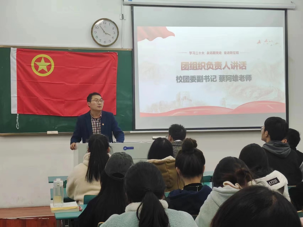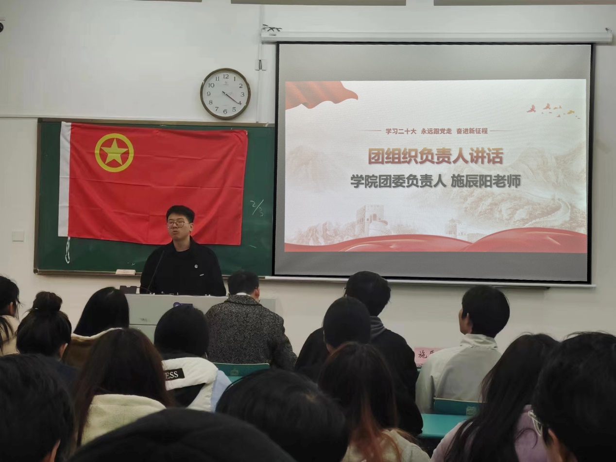 施辰阳老师呼吁全体同学要树立远大的理想,奋发进取,严格要求自己,积极履行团员的权利和义务,要把党的二十大精神融入思想、注入灵魂、付诸行动,努力在追求青春理想、展现青春活力中成就更好的自己。李金航老师肯定了团支部过去一年取得的丰硕成绩,勉励全体同学要勤奋学习、立志成才,积极参加志愿服务和各项实践活动,与新时代同频共振,切实践行“请党放心、强国有我”的青春誓言。