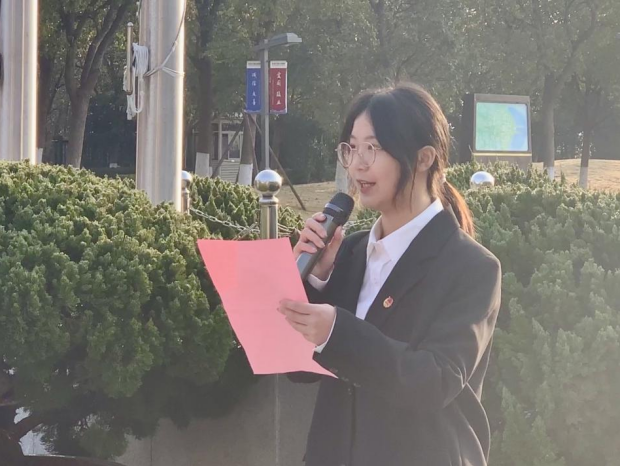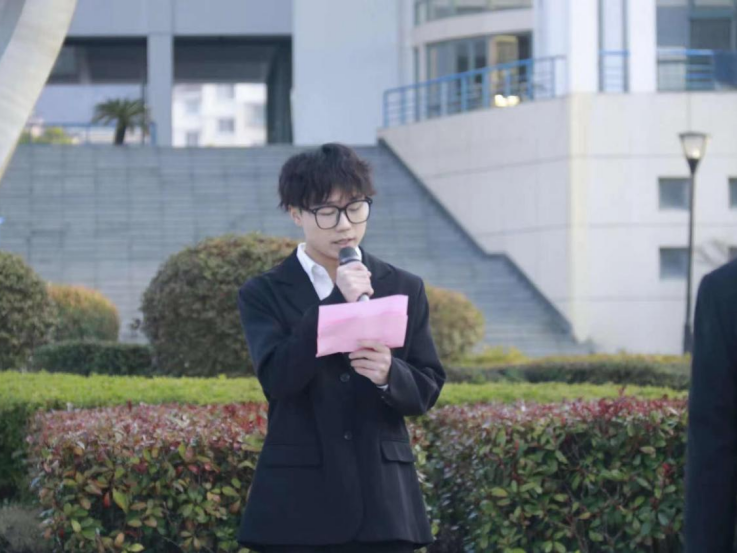 定海校区由A22行政1徐磊作为学生代表,以《肩扛时代重任,共筑华夏辉煌》为主题,进行国旗下发言。他用热情澎湃的语言号召全体同学,作为新时代的海大学子,当怀抱梦想、脚踏实地,踔厉奋发、挺膺担当,以奋斗之青春扛时代之大任,更要心系“国家事”,肩扛“国家责”,跑好属于当代青年的“接力棒”,在党的二十大精神的感召下,与祖国同行,铸华夏辉煌!