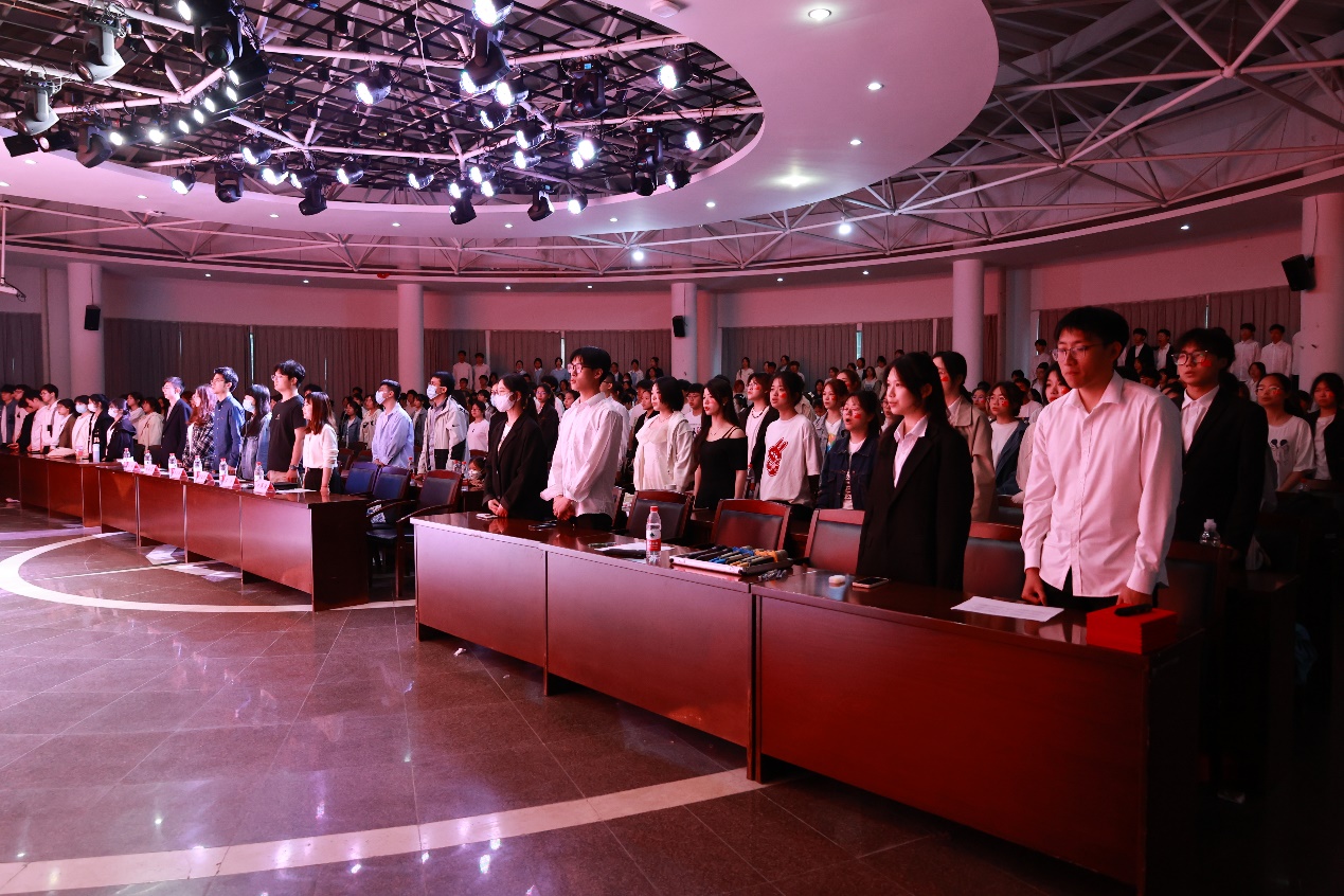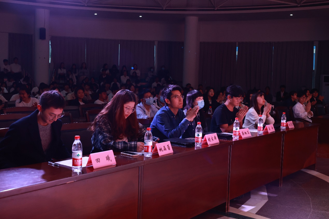比赛开始前,全体起立,奏唱国歌和团歌,整个报告厅庄严肃穆。演唱开始前,各班团支书围绕学习成果、基层建设、支部特色等方面进行团支部风采介绍,充分展现了各团支部的青春活力与风采,展现了各团支部对“五四”精神及党的光辉历史的深刻理解与感悟。