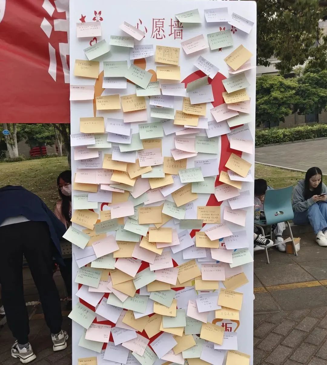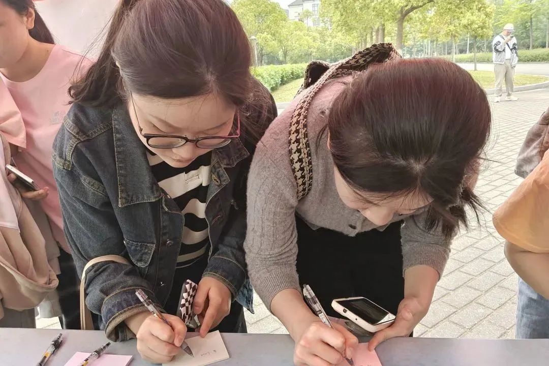 同学们在工作人员的指引下写下一张张心愿便贴,无声地倾诉着对母亲的祝愿与爱意。而满载着同学们的祝福与情意的便贴格外灿烂,是同学们藏在心底没说出口的那句“妈妈,我爱你!”