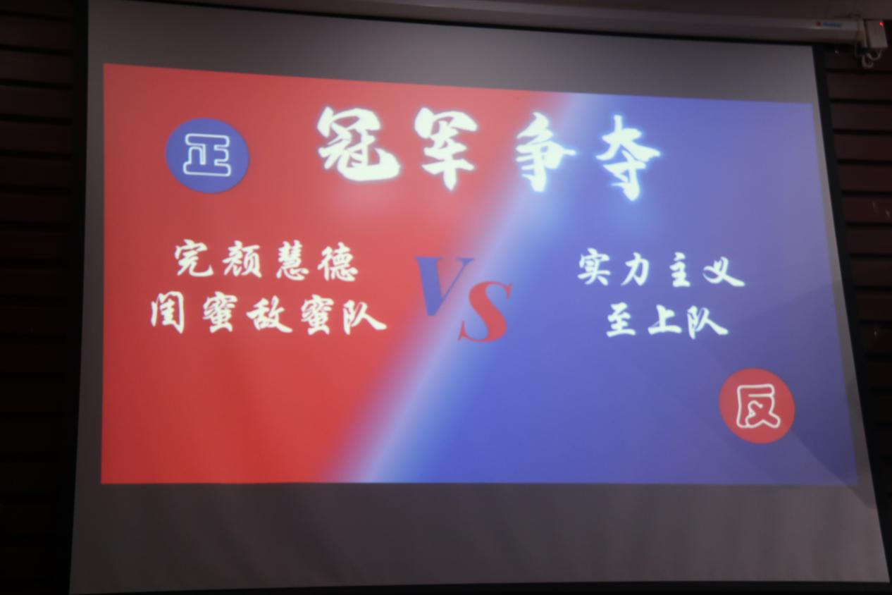 学院笃行辩论队领队骆意瑾同学肯定了双方论点中的亮点部分,同时提出了一些遗憾的地方,对双方辩手进行了鼓励。最后主席宣布实力主义至上队获得冠军,冠军队的最佳辩手为骆涛同学,亚军队的最佳辩手为王慧杰同学。