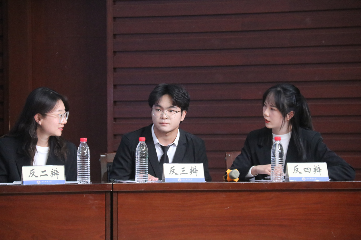 观众席座无虚席,选手们摩拳擦掌。到场的评委和嘉宾有黄色网站 经济系教师、A23数经班主任常乐老师,学院学工办辅导员李金航老师,学院笃行辩论队队长杨宇翔同学,笃行辩论队副队长钱直罕、骆意瑾同学以及各学院辩论队领队。