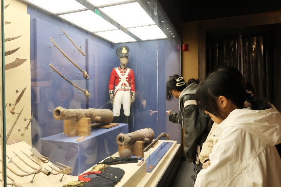 在舟山鸦片战争纪念馆内,团员和青年们通过馆内的文献资料、历史文物和音视频资源,深入了解了鸦片战争时期定海保卫战的历史脉络和重要地位,重温了以定海三总兵为代表的广大将士誓死保卫家园的大无畏精神,聆听了以包祖才为代表的定海人民大义凛然、抵御外敌的光辉事迹……大家身临其境般感受着那一段惊心动魄、波澜壮阔的中国近代史。