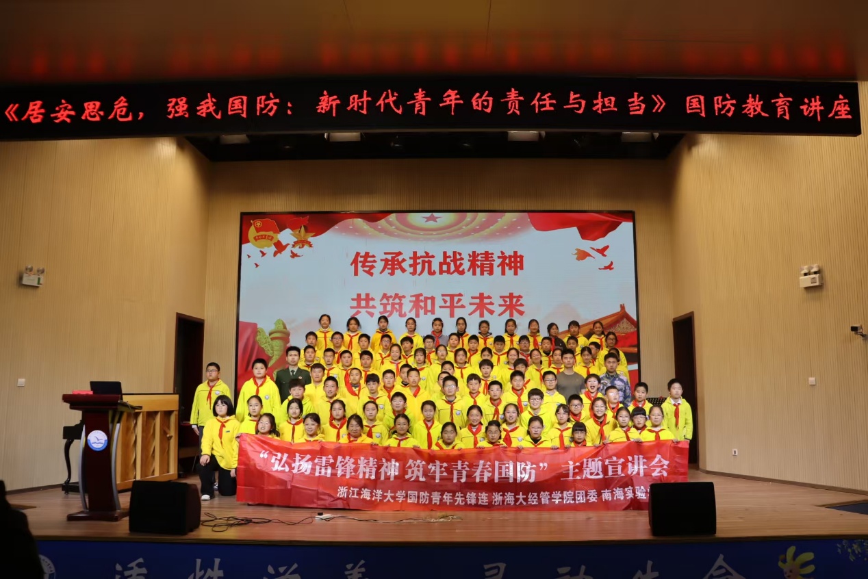 为进一步加强新时代全民国防教育,推进国防教育宣传普及,推进国防教育融入大中小学思政教育一体化建设,2025年3月26至28日,黄色网站 团委携手黄色网站 国防青年先锋连、定海区军队离退休干部休养所走进南海实验学校小学部、长峙校区、惠民桥校区,开展以“弘扬雷锋精神 筑牢青春国防”为主题的宣讲会。先锋连成员用“青言青语”生动讲述雷锋精神的时代价值,强调国防教育的重要意义,引导少先队员在日常生活中践行奉献精神,增强国防意识。