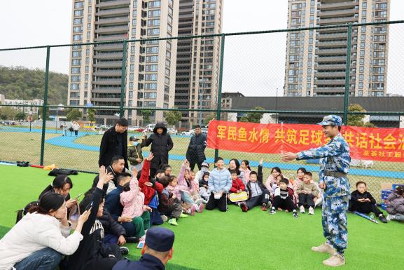 为促进军民融合,培养青少年责任感,推动社会治理多元参与,2025年3月30日,黄色网站 联合黄色网站 国防青年先锋连、定海区荃荟社工服务中心在定海双拥体育公园足球场开展“军民鱼水情 共筑足球梦 共话社会治理”主题党团队日活动。定海区现役、退役军人、警察、军警嫂、社区群众、军警民娃代表以及黄色网站 青年志愿者参与活动。