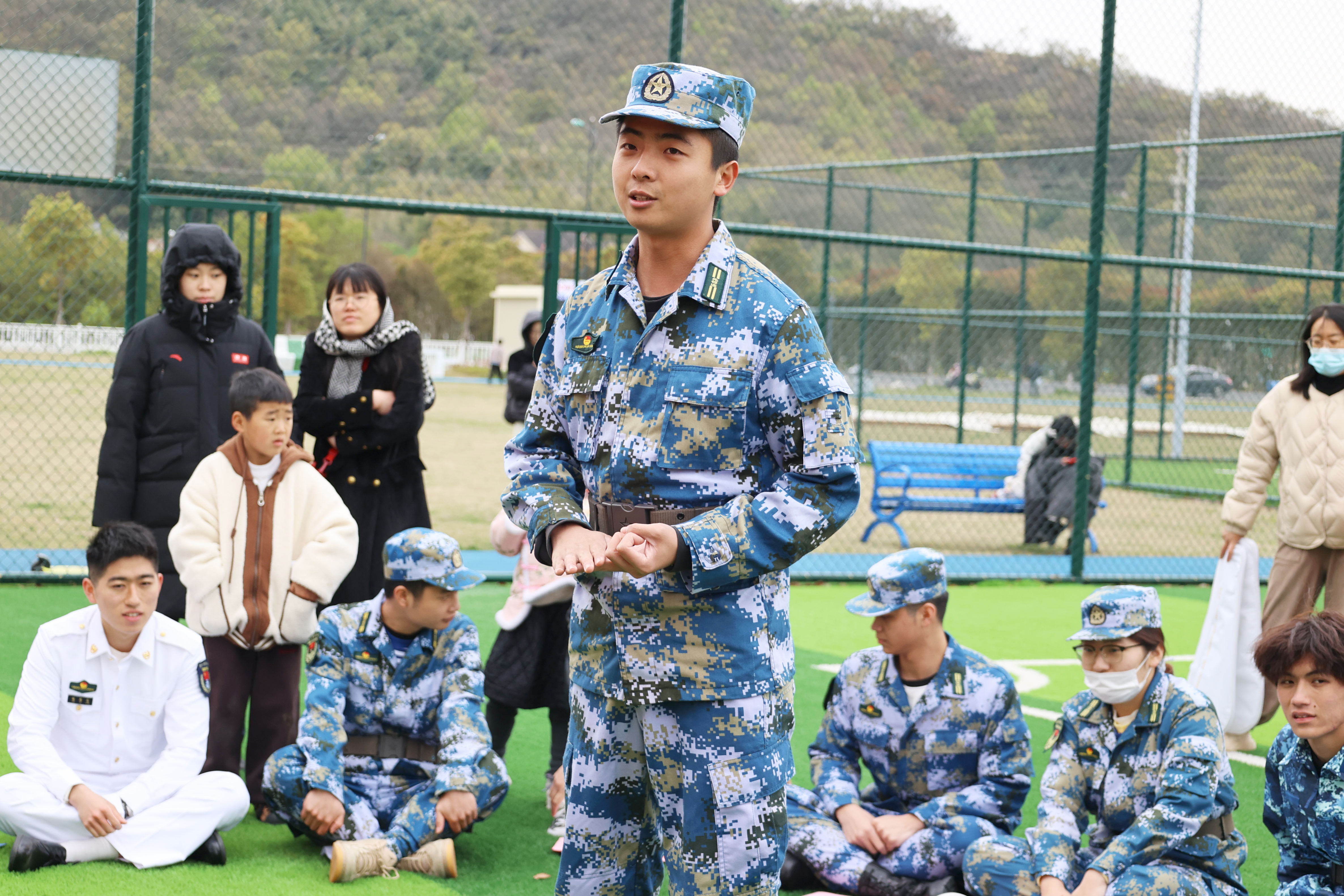 校国防青年先锋连退役大学生俞文焕、徐轩同学,还向大家分享了自己参军入伍的经历和收获,讲述了军旅生活如何锤炼意志、提升责任感,阐述了国防教育在青少年成长中的重要性。两位退役大学生还面向少先队员开展了国防教育趣味问答,同学们纷纷举手、踊跃参与,积极回答关于国旗、军队、国防科技等方面的问题并赢得奖品,在轻松愉快的互动中加深了对国防知识的理解与认同。