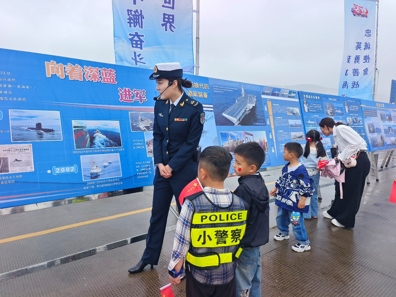 最激动人心的环节,莫过于登上海军舰艇。站在甲板上,孩子们在讲解员的耐心介绍下,学习了解海军舰艇的结构组成、任务功能和战术作用。他们惊叹于舰艇装备的先进,也被海军官兵们无私奉献、无惧风浪的精神深深感染。讲解员更是以通俗易懂的语言,讲述了人民海军自成立以来走过的光辉历程——从开国大典后的组建起步,到如今挺进深蓝、建成远海攻防体系的伟大跨越,展现了中国海军从“近海防御”到“远海护卫”的战略转型。