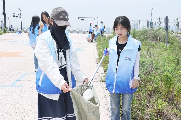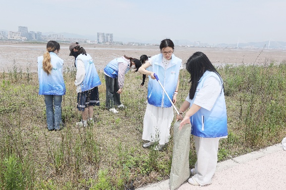 志愿者们化身为“生态卫士”“海洋保卫者”,他们手持夹钳与环保袋,或半蹲、或俯身,细致地夹起食品袋、塑料瓶、纸屑、枯萎海草、烟蒂等垃圾。同学们热情不减,脚踏实地,专注投入的身影,成为这片滩涂上最耀眼的风景。志愿者们还认真完成垃圾分类称重、转运处理等后续任务。经过清理的小干岛滩涂,再次展现出它纯净自然的美丽,仿佛在告诉大家,每一份微小的付出都可以凝聚成保护海洋的巨大力量。