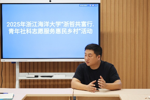 金平村党支部书记、主任、社管会社长陈军向服务队师生一行介绍了金平村近年来围绕“绿色渔港、休闲旅居”的发展定位所开展的重点工作和取得的成效。陈军书记表示,村庄依托渔业与海岛生态优势,通过搭建数字化智慧平台、深耕离岛人文治理、攻坚共享基础设施、打造“红帆”党建品牌、聚焦“港、渔、旅”融合、孵化民宿、酒馆、餐厅等新业态,加速推进金平从传统渔村向休闲旅居渔港村的转型升级,形成“生态渔港·和美金鸡”的和美共富画卷和“党建引领、生态赋能、产业联动”的“金平模式”。