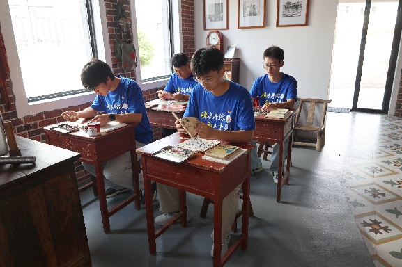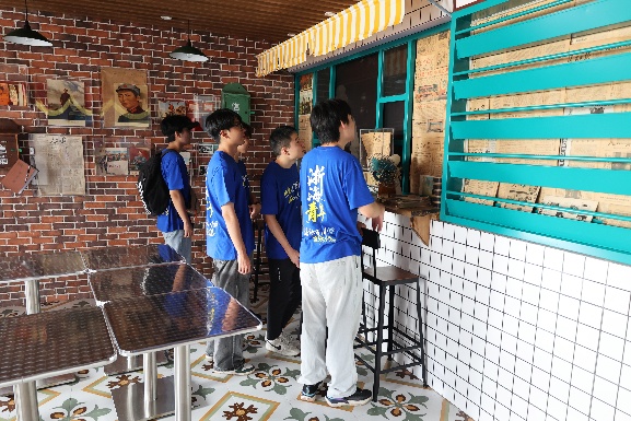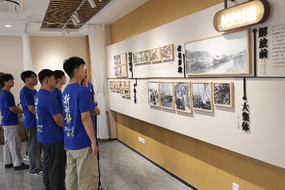 服务队成员还赴黄沙村实地参观学习。在黄沙村村史馆,特色海产、渔民捕捞作业的工具、有趣生动的渔谚以实物、图片、文字等形式呈现在大家面前,让师生们全面了解了黄沙村过往荣光和渔家风情。在初心照相馆,老旧报刊亭、黄沙放映厅将师生瞬间拉入了二十世纪七八十年代的怀旧氛围中。一张张老照片、一件件旧物件,仿佛讲述着村庄从渔港旧貌到共富新貌的蝶变故事。在嵊泗抗战纪念馆,师生们通过观看日军1:1仿真自杀式鱼雷艇模型及各种历史文献和相关实物,全面了解了日军侵略嵊泗的史实以及犯下的累累罪行。
